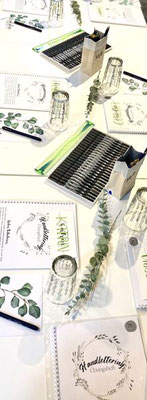 Ihr werdet gemeinsam kreativ, lernt die Grundlagen des Handlettering und gestaltet das Deckblatt eines Notizbuches...